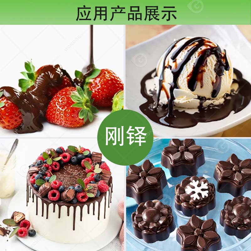 装饰性巧克力材料:非常适合装饰蛋糕、圣代和各种冷甜点,保证表面平整光滑,提升产品的整体美感。