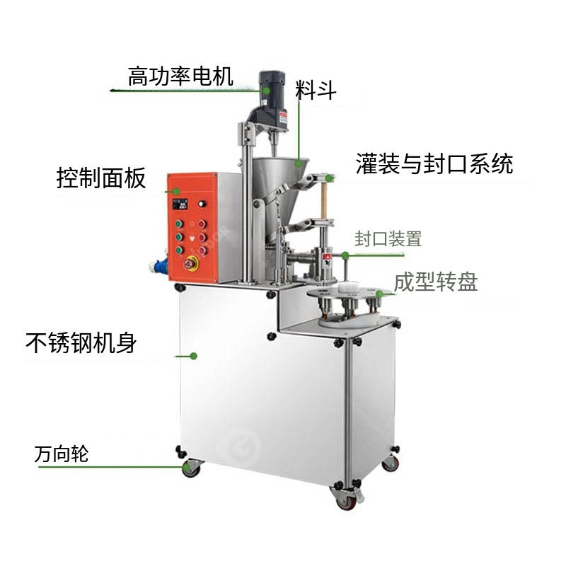 借助精密成型转盘,该机器可确保每个烧麦保持一致的尺寸和质量,从而有助于实现统一的产品标准。