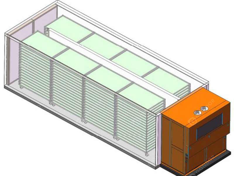 潮湿的空气在热回收装置中冷却,水分在此凝结并被收集或排出。干燥后的空气随后被重新加热并循环回干燥室,从而显著提高了能源效率。