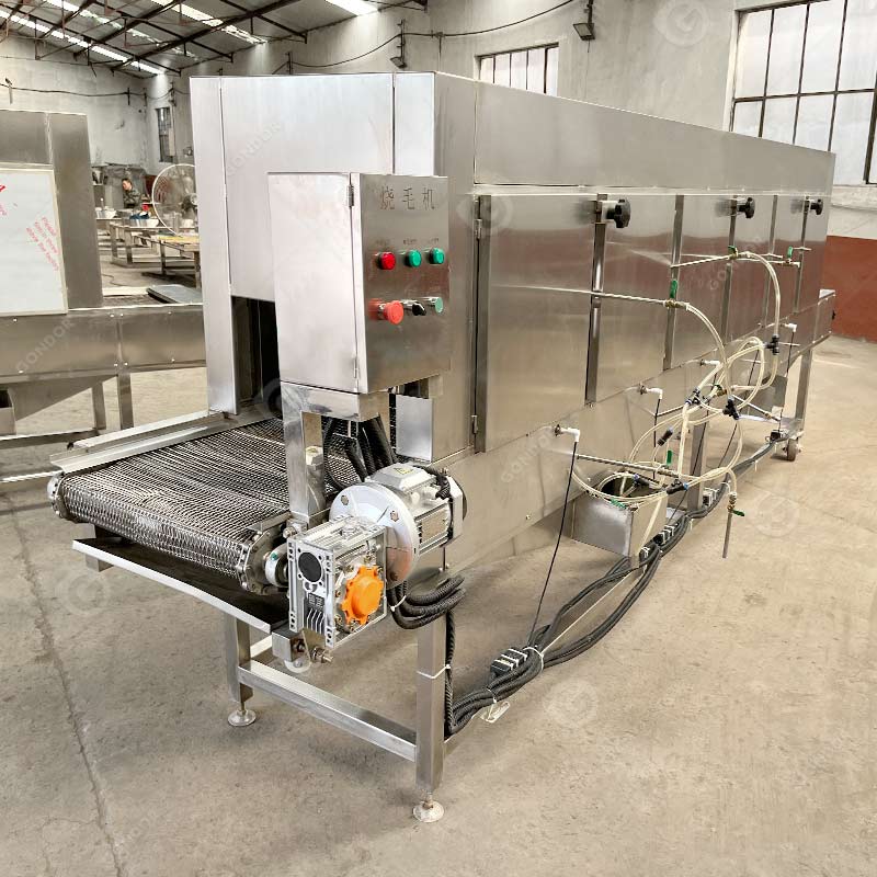 猪皮脱毛机可高效处理肉类和蔬菜的表皮。该机以液化石油气(LPG)为能源,采用电子点火产生均匀火焰,并配备自动进料系统,可实现连续、高效、一步完成的烧毛作业。多燃烧器设计、全方位火焰覆盖以及可调节火力,确保各种食材都能得到均匀、精准的烧毛处理。
