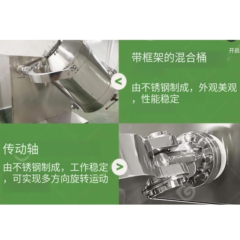 3D混合机因其高效、安全、稳定等优点,被广泛应用于各个行业。其独特的三维摆动混合方式,结合智能控制系统,确保了在粉状和颗粒状物料混合方面的卓越性能,使其成为工业生产和科研应用中不可或缺的设备。